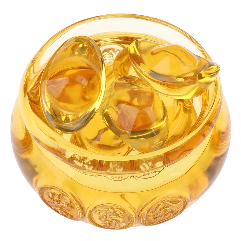 Crafted from high-quality crystal, this treasure bowl features a stunning golden ingot design. The reflective properties of crystal beautifully capture and enhance light, adding elegance to any space in which it is placed.